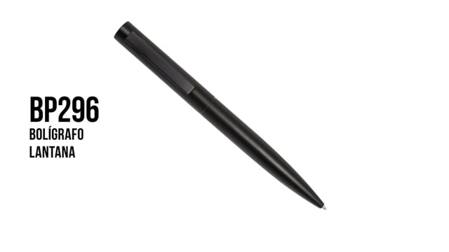 Metal. Cuerpo metálico negro mate. Clip del mismo color. Apertura giratoria. Tinta negra.