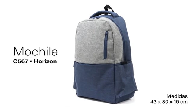 43 x 30 x 16 cm. Capacidad 20 litros. Poliéster wulong 300D. Interior forrado en 210D en color gris. Mochila portanotebook de hasta 15 pulgadas. Compartimento principal con bolsillo acolchado para la notebook y bolsillo organizador. Frente con 2 bolsillos con cierre, uno horizontal y otro pequeño vertical. En los laterales cuenta con dos bolsillos amplios para transportar botellas y accesorios. Asa superior, correas y respaldo acolchados. Correas ajustables. En la parte trasera incluye un bolsillo de seguridad con cierre y tira para sujetar la mochila en la manija extensible de un equipaje de mano. Tiradores de cierres metálicos.