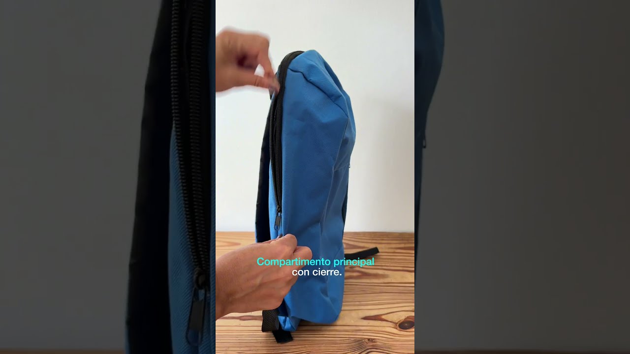 Mochila urbana. Bitono (cuerpo principal de un color, correas combinadas, asa y cierres en color negro). Compartimento principal con cierre. Bolsillo frontal con cierre lateral vertical. Correas ajustables. Tiradores de cierres metálicos.