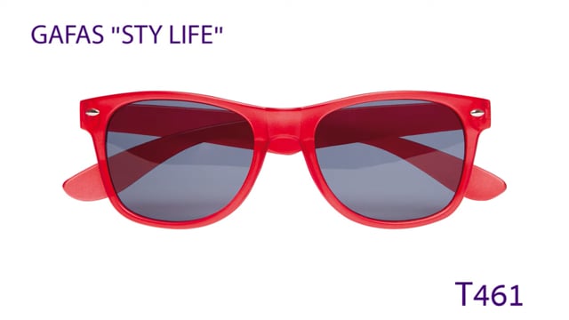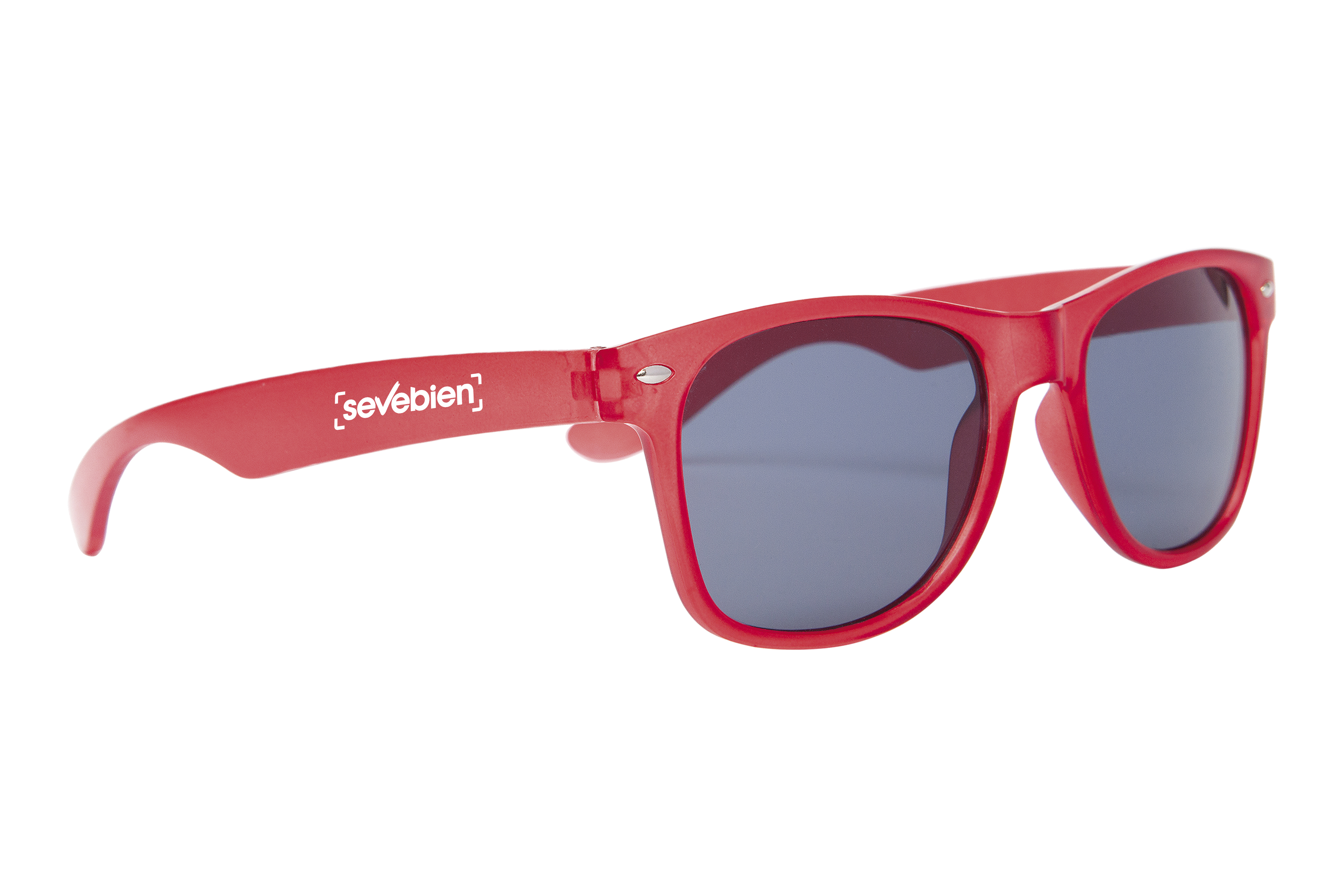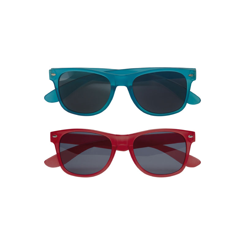 Unico talle. Gafas de sol de cristal oscuro sobre armazón de plástico. Certificado UV 400, clase 3. Amplio espacio de impresión.